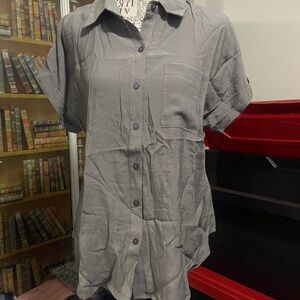 Chic charcoal button-down with short sleeves. Features a front pocket. Ideal for everyday wear.