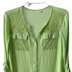 NY Collection Coastal Summertime Top Light Green Breathable Women’s Blouse S