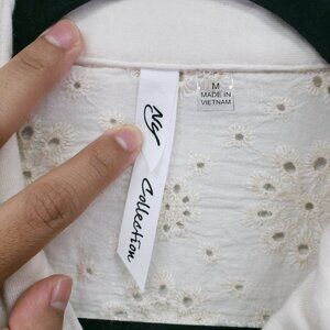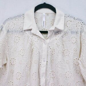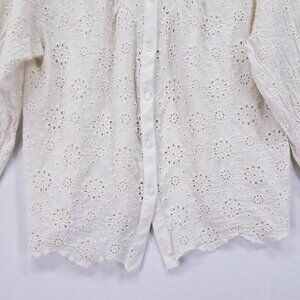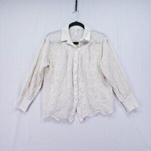 NY Collection Cream Lace Floral Collar Button Down Preppy Top Size M