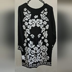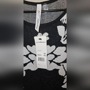 NY Collection Dana Sweater Dress Black and White Floral Long Sleeve Jacquard