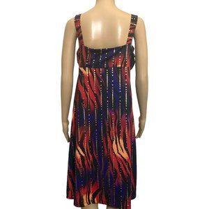 NY Collection Dress Womens L Midi Multicolored Sequins Zip Chest Flowy Stretch