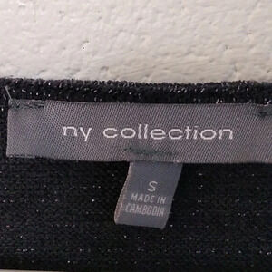 NY Collection's fine gauge knit sweater, featuring dolman sleeves in black and metallic silver, is perfect for elevating a pair of jeans or for more formal events.
