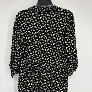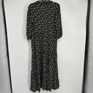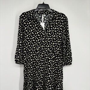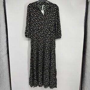 NY Collection Floral Print Crinkle Tiered Maxi Dress Black/Ecru Ditsy Sze PL NWT