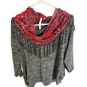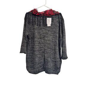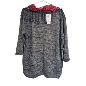 NY Collection Gray Heather Lightweight Sweater Size XL Red Scarf NWT