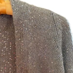 NY Collection Grey/Silver Sequins Cardigan M Petite