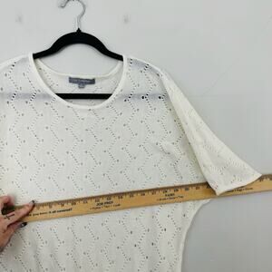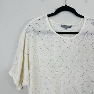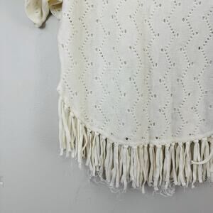 NY Collection Ivory Sheer Knit Short Sleeve Blouse With Fringe Women’s Size M
