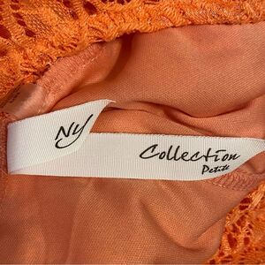 NY Collection Lacy Coral Blouse Short Sleeve Womens Size MP Flowy Lined Lace