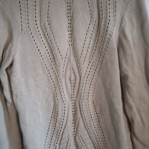 There are rolls bordering the collar, front, sleeves and hem. There is an intricate woven work on the back.