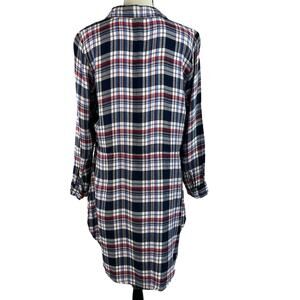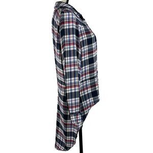 NY Collection Medium Top Plaid Hi-Low Long Sleeves Button Up Collared Multicolor