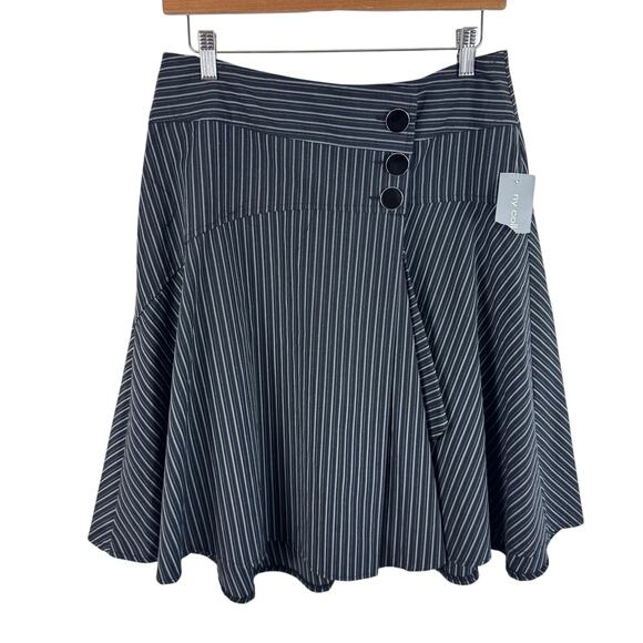 NY Collection NWT Black White Striped Asymmetrical Button Front A-Line Skirt 6