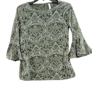 NY Collection NWT size 1X green floral tank underneath ruffle bell sleeve