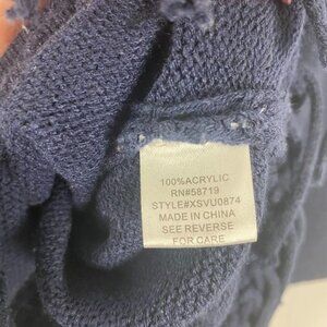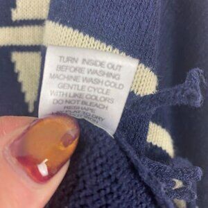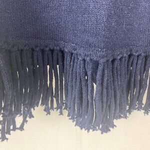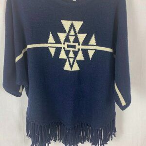 NY Collection Navy Pullover Tribal Print Fringe Sweater.