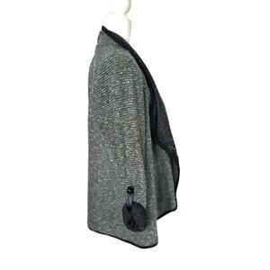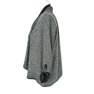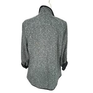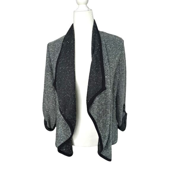 NY Collection Open Front Cardigan Jacket Petite Large PL Roll Tab Sleeve Grey