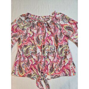 NY Collection Paisley Print Off-Shoulder Top Bell Sleeves Crochet Size 2X New