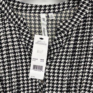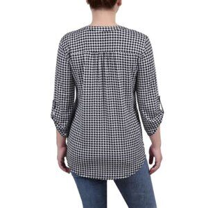 NY Collection Petite 3/4 Roll Tap Pullover Top Black White Herringbone PL NWT