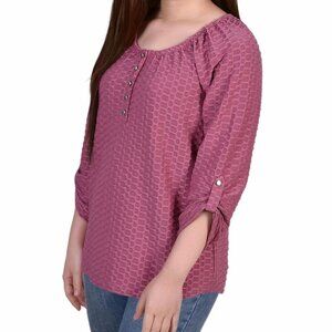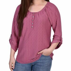NY Collection Petite 3/4 Sleeve Honeycomb Henley Top Mauve - Petite Large - NWT