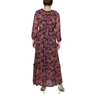 NY Collection dress, paisley maxi dress, petite long sleeve dress, mesh ruffle dress, smocked waist maxi, black rust dress, fall maxi dress, special occasion dress, tiered hem dress, surplice neckline gown