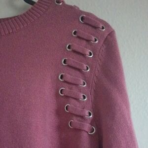 NY Collection Petite Pink Sweater Women's Size Petite Small Y2K Grommet Lace Up