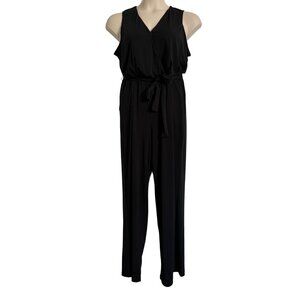 NY Collection Petite XL Sleeveless Black Jumpsuit Tie Waist Stretchy Pockets NWT