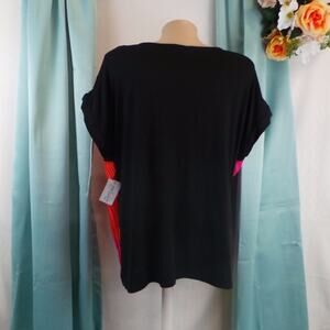 NY Collection Pleated Top 1X Color Block Cap Sleeve Career Plus Tunic Blouse New