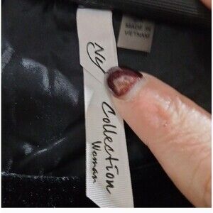 Add a touch of glam to your wardrobe with this NY Collection black velour sleeveless dress in size 2XL. The dress features gold sequins that create a metallic theme, adding elegance to the A-line style and knee-length hem. Perfect for any occasion, this dress is a must-have for any fashion-forward woman. The dress is made of velour fabric, ensuring softness and comfort throughout the day.