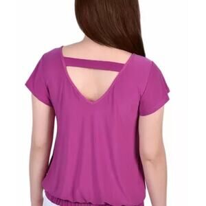 You'll feel special when wearing this studded neck shirt from NY Collection. This elastic waist makes it so comfortable to wear.