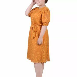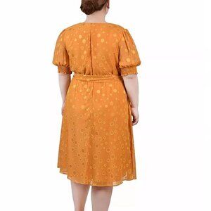 NY Collection Plus Size Swiss Dot Elbow Sleeve Dress - Inca Gold-Tone - Size 2X