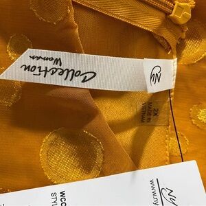 Add a pop of golden charm to your wardrobe with this stunning midi dress from NY Collection. Crafted in a rich Inca gold-tone hue, it features delicate Swiss dot texture, a flattering scoop neckline, and a self-tie belt for a defined waist. Perfect for work, brunch, or special occasions.