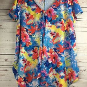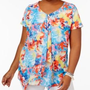 NY Collection Plus Size Printed Draped Multi Florafauna Top