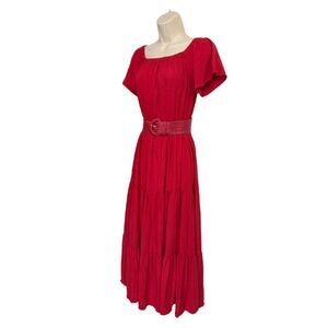 NY Collection Red Tiered Short Flutter Sleeve Midi Dress