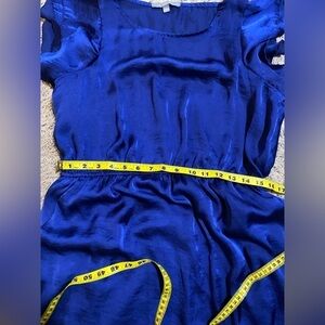 100% polyester dress by NY Collection. Ruffle short sleeves- midi length. Classic for wedding, cocktail party, etc . See pics for approximate measurements