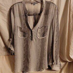 NY Collection Sheer Beige Snake Skin Print Button-Up Shirt Size Large