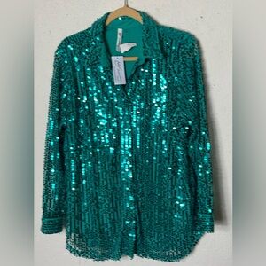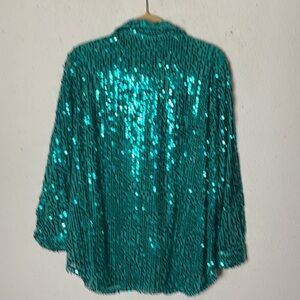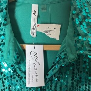 NY Collection Shimmery green sequins Button Up Shirt Size 1X