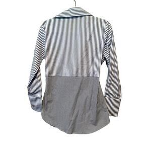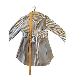 NY Collection Shirt Women's Medium Blue White Striped Knotted Front Long Sleeve.