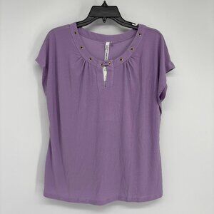 NY Collection Women's Short Extended-Sleeve Grommet Neck Knit Top Regal Orchid Size PL NWT