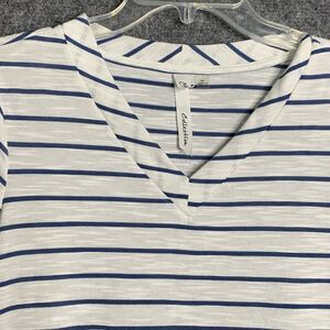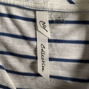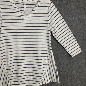 NY Collection Striped Knit Tunic Top Light Weight Women M 3/4 Sleeve Flare Hem