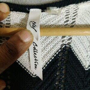 NY Collection Sweater Womens Small Long Black/White Open Front Cardigan
