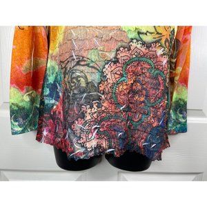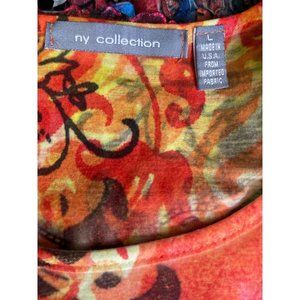 NY Collection Top Womens Size Large L Long Sleeve Orange Colorful Ruffle Stretch
