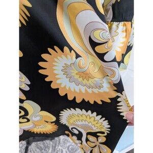 NY Collection Top Women's XL Groovy 1960s Look Yellow Black Sexy Satiny Blouse