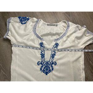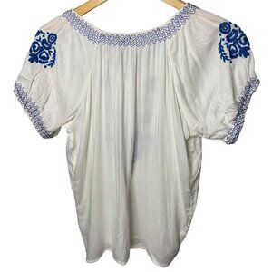 NY Collection White Embroidered Short Sleeved Boho Cotton Blouse Top Sz SP