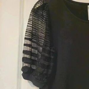 NY Collection Women's Black Poly/Spandex Knit Lace Half Length Sleeve Top EUC