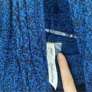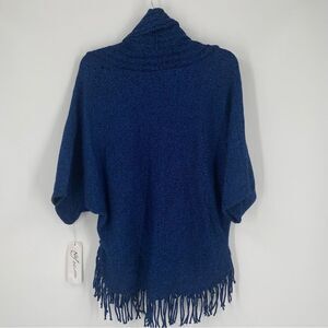 NY Collection Women’s Cowl Neck Dolman Sleeve Blue Fringe Sweater size S