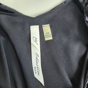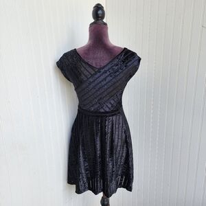 NY Collection Womens Dress V Neck Soft Velvet Fit Flare Dress Black Striped PXS