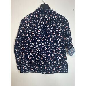 NY Collection Womens Floral Print Button-Up Blouse Roll Tab Sleeve Size S