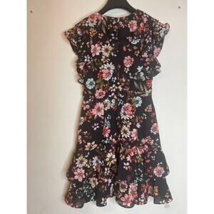 NY Collection Womens Floral Print Ruffle Tiered Chiffon Dress Sleeveless Size M