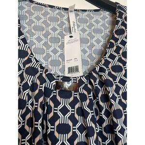 NY Collection Womens Geometric Print Scoop Neck Blouse Balloon Short Sleeve Size 2X