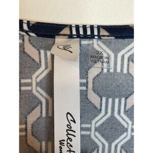 NY Collection Womens Geometric Print Scoop Neck Blouse Balloon Short Sleeve Size 2X