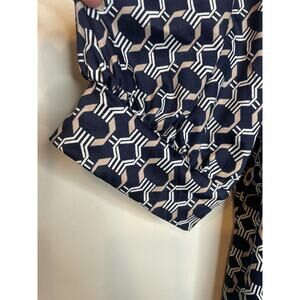 NY Collection Womens Geometric Print Neck Blouse Balloon Short Sleeve Size 2X