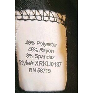 Stunning sparkling black blouse from NY Collection. The cold shoulder sleeves and scoop neck design add a touch of sophistication to any outfit. The relaxed fit and lightweight material make it perfect for everyday wear. This blouse is made from a polyester and rayon blend, and is machine washable for easy care. The glitter accents are hard to see in the photos, but it's really cute! Perfect for a night out. Asymmetrical hem. Tunic style. 3/4 length sleeve. Please see photos for details and measurements.  Fast shipping and smoke free home.  Thank you for looking!