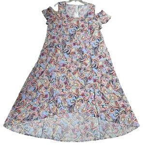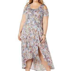 NY Collection Women's Multi-Color Paisley Cold Shoulder Midi Dress Plus Sz 2XWP